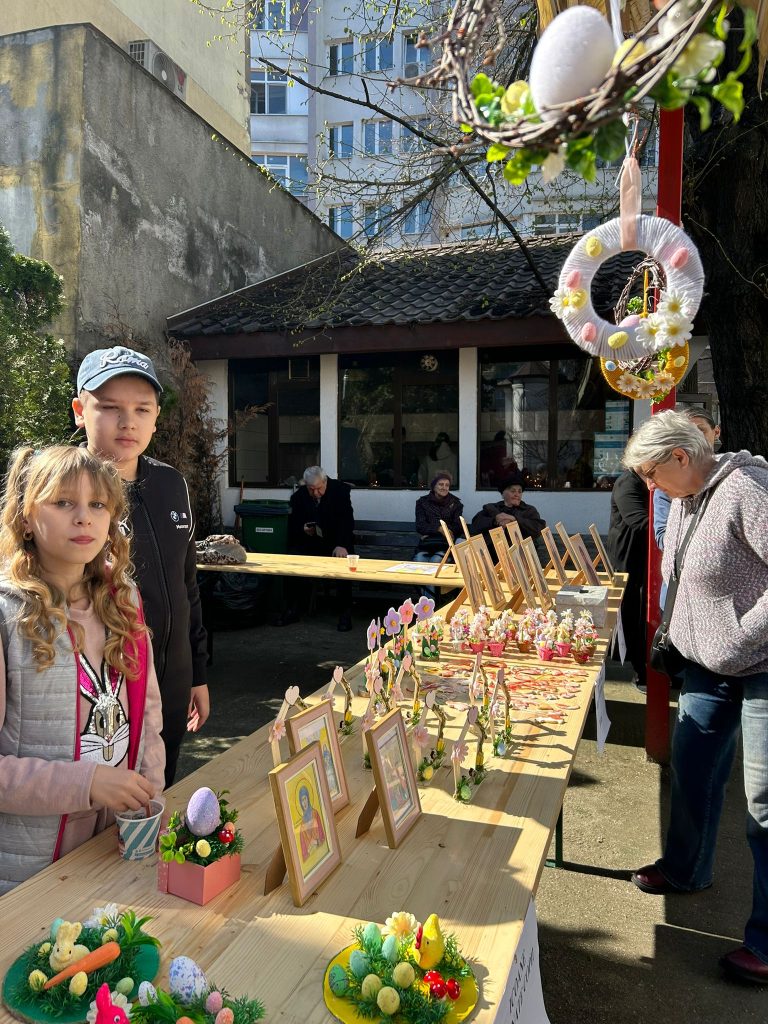 Evenimentul a fost completat de standuri cu prăjituri pregătite cu grijă de părinți, dar și de aranjamente hand-made cu motive de Paște, toate oferite în schimbul unor donații. Atmosfera a fost una caldă și primitoare, în care generozitatea s-a împletit firesc cu bucuria sărbătorii. Banii strânși la eveniment urmând a fi redirecționați către Cantina social ”Sfântul Mucenic Barnabas”.